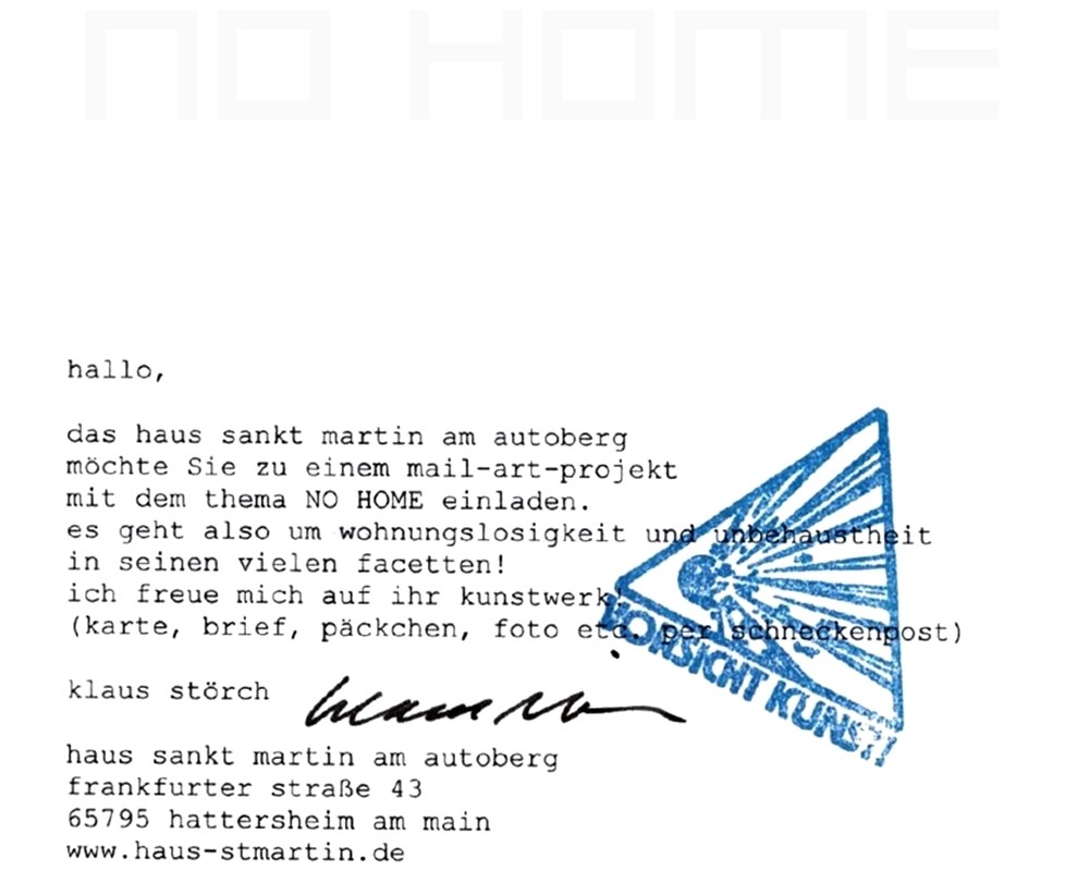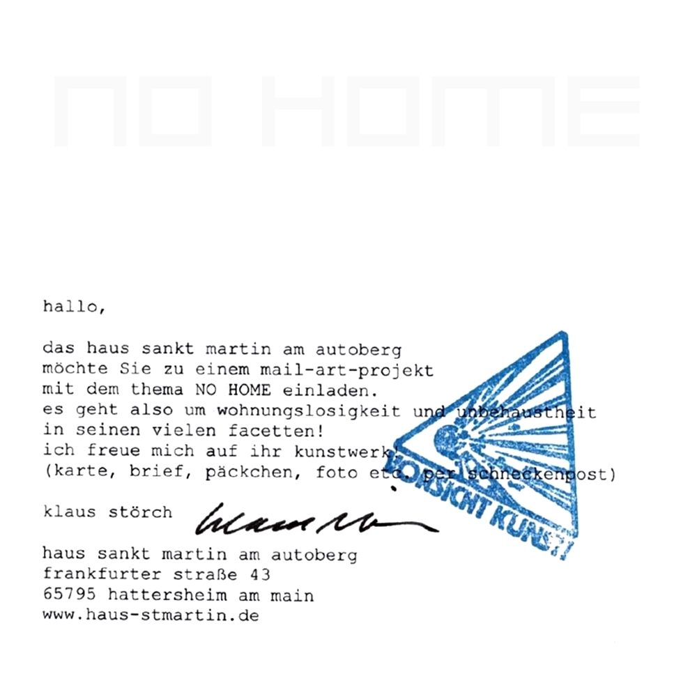 NO HOME 17. April 201510. Juni 2015Veröffentlicht in showingmehomeGetaggt mit Deutschland, Soziale Plastik NO HOME Ausschreibung vom Haus Sankt Martin am Autoberg Klaus Störch Hattersheim am Main, Deutschland Teilen mit: Klicke, um auf X zu teilen (Wird in neuem Fenster geöffnet) X Klick, um auf Facebook zu teilen (Wird in neuem Fenster geöffnet) Facebook Gefällt mir Wird geladen … Ähnliche Beiträge